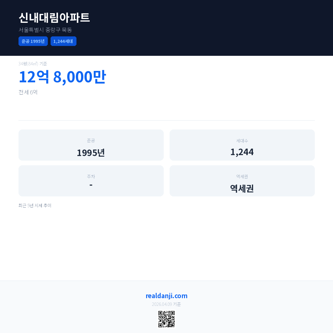 신내대림아파트 최근 거래가는 12억 8,000만입니다. (2026-04)