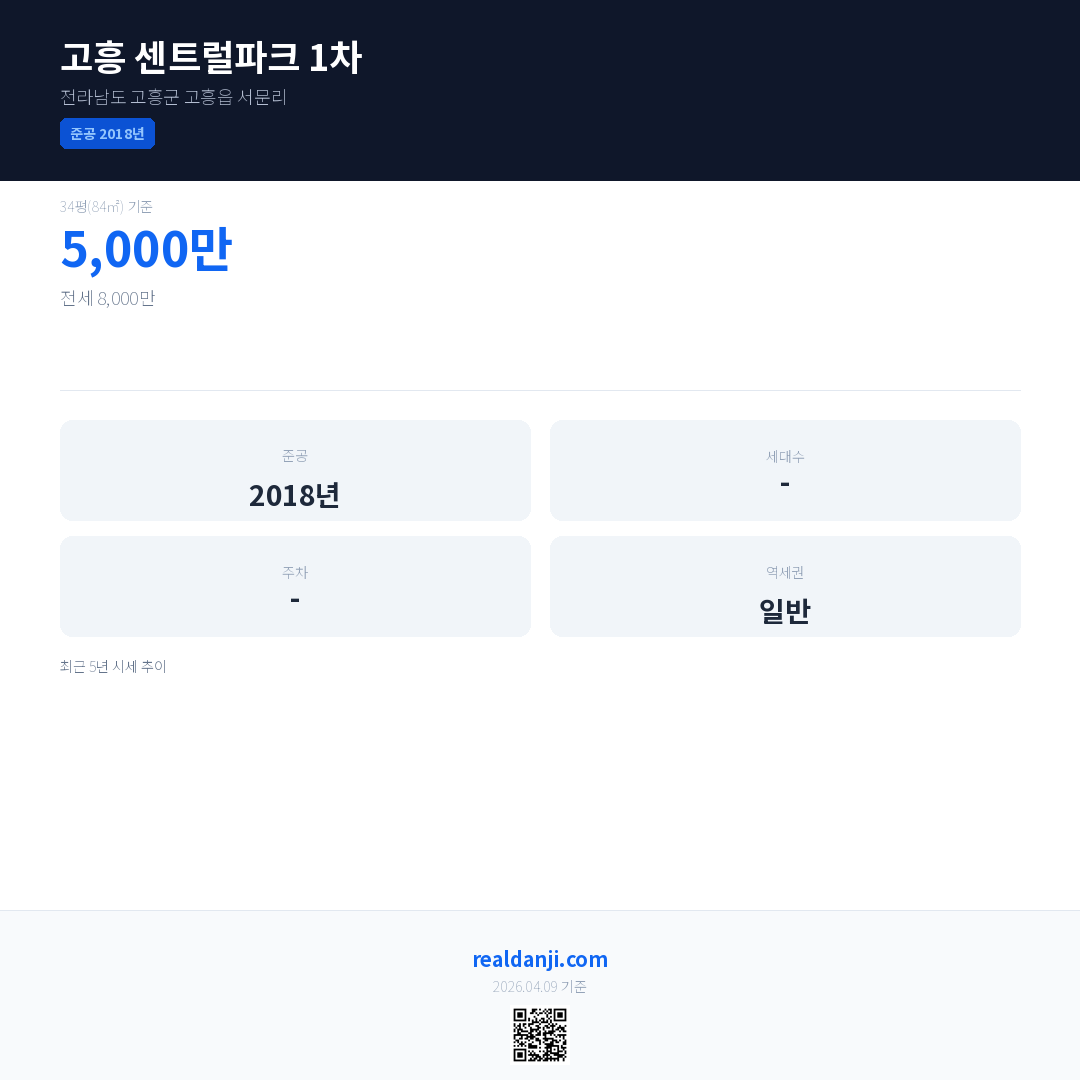 고흥 센트럴파크 1차 최근 거래가는 5,000만입니다. (2025-09)