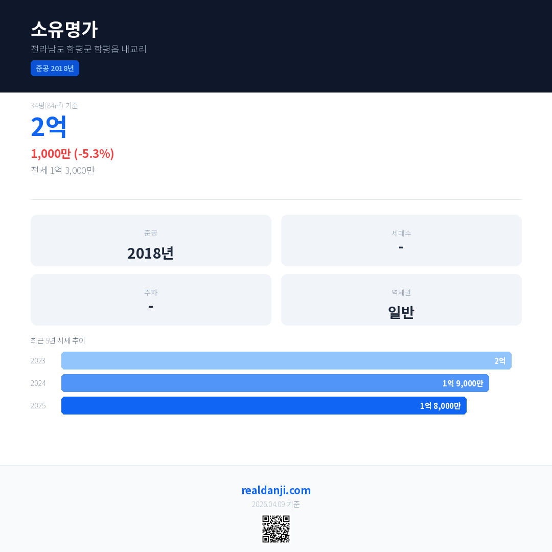 소유명가 최근 거래가는 2억입니다. (2025-10)