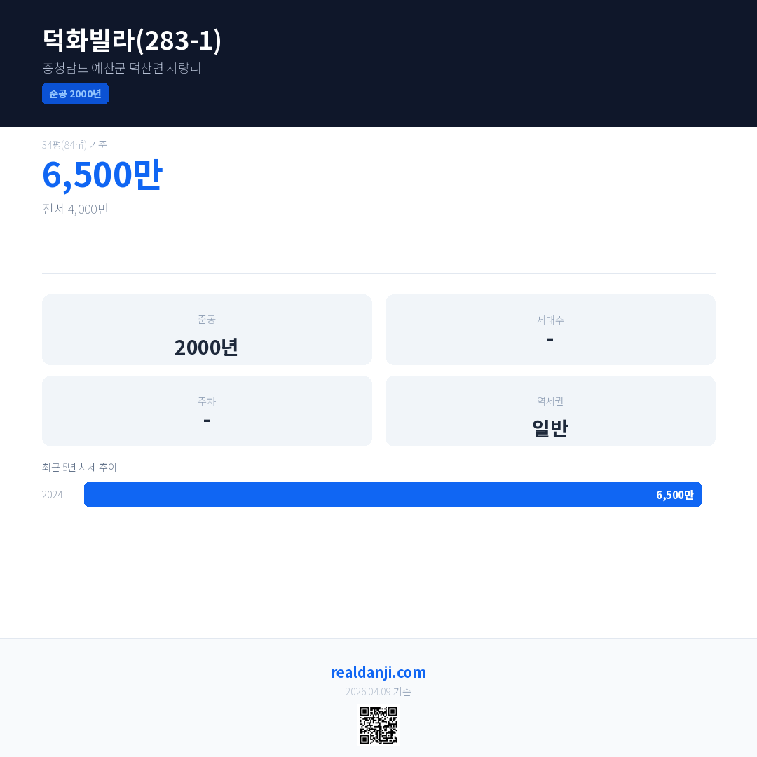 덕화빌라(283-1) 최근 거래가는 6,500만입니다. (2024-11)