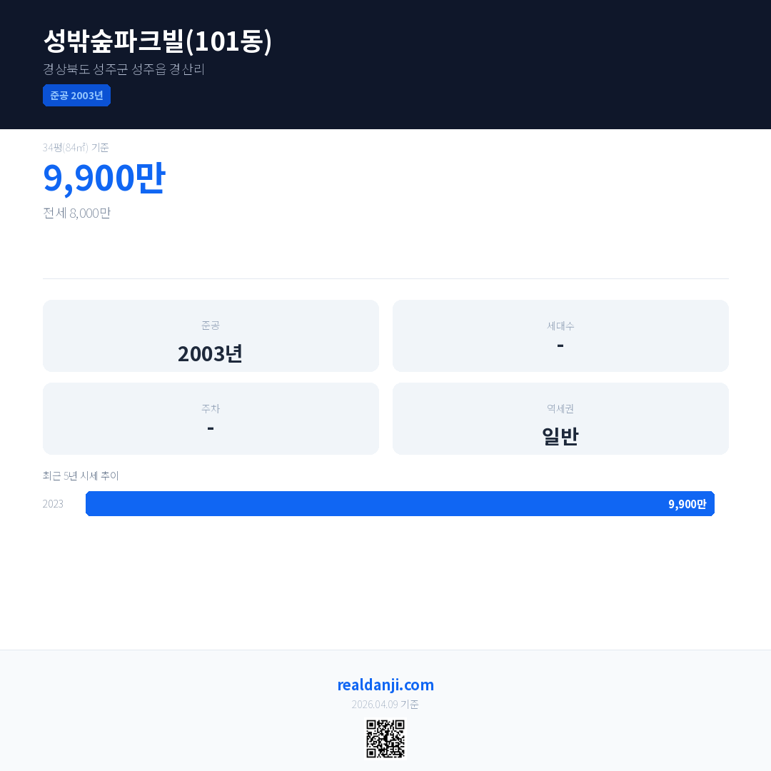 성밖숲파크빌(101동) 최근 거래가는 9,900만입니다. (2023-09)