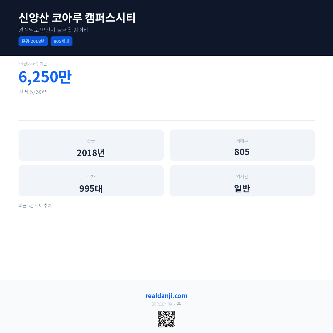 신양산 코아루 캠퍼스시티은(는) 2018년에 준공되었으며, 현재 8년차입니다. 총 805세대 규모입니다.