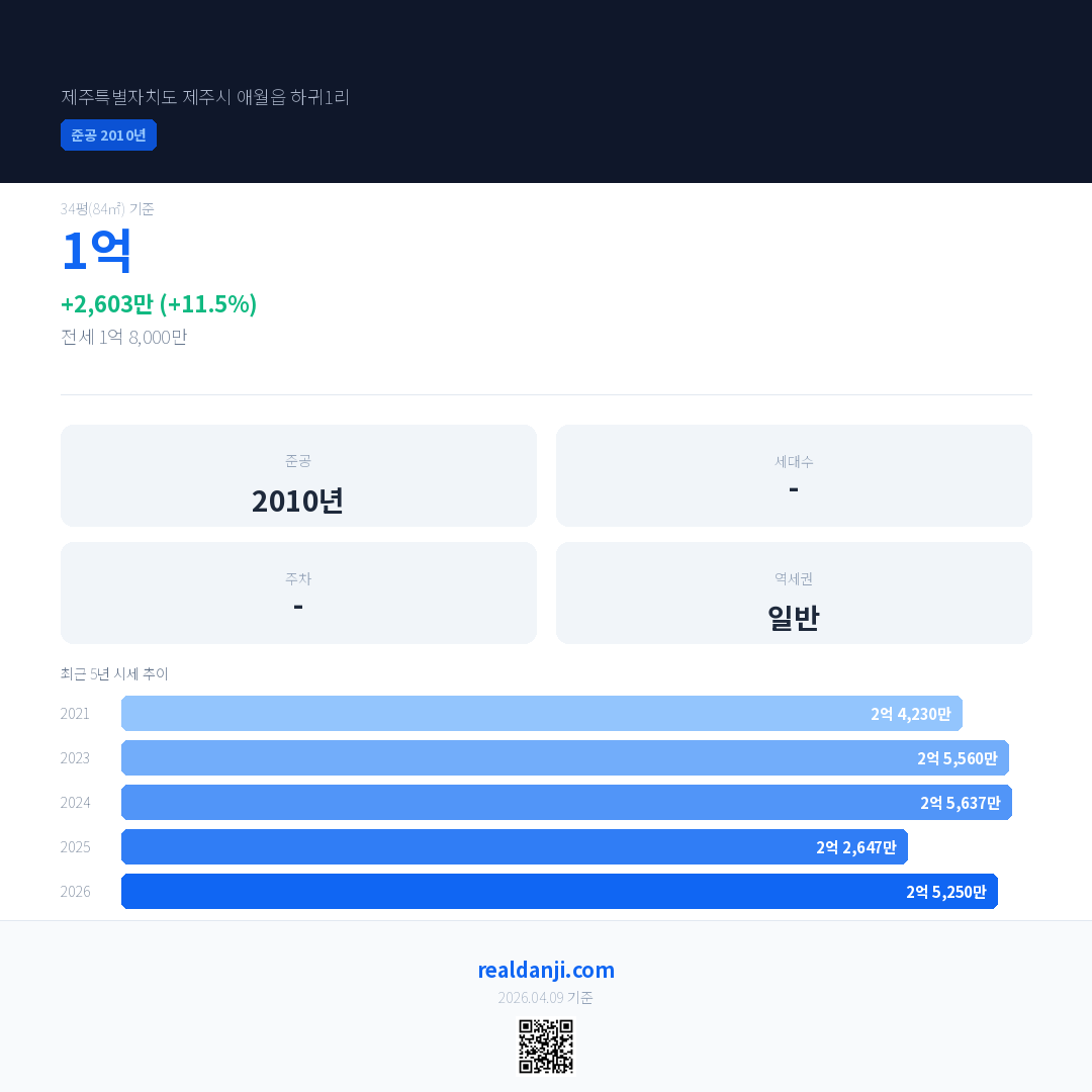 국민평형 기준 2026년 평균 거래가는 2억 5,250만으로, 전년 대비 11.5% 상승 했습니다.