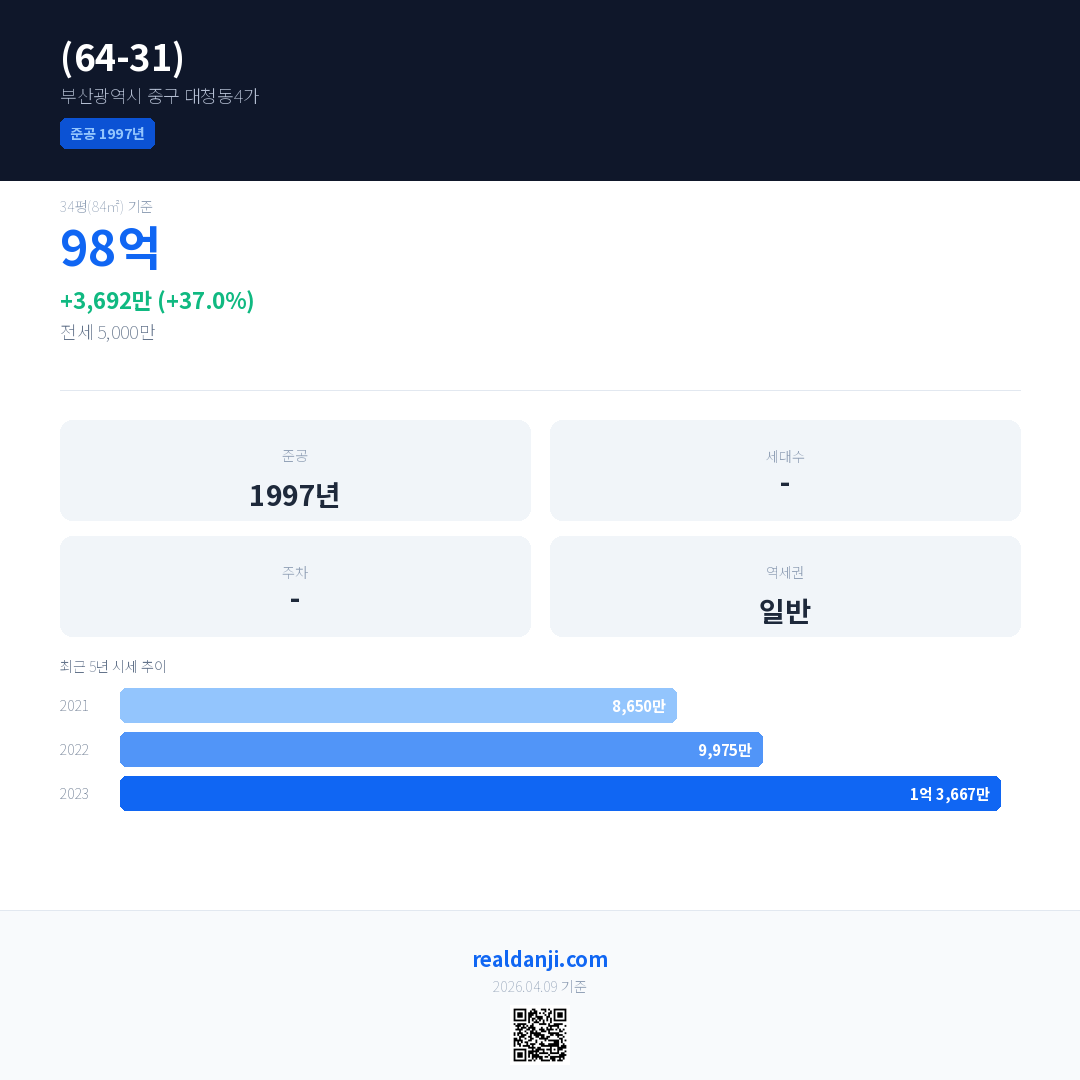 (64-31) 최근 거래가는 98억입니다. (2026-03)
