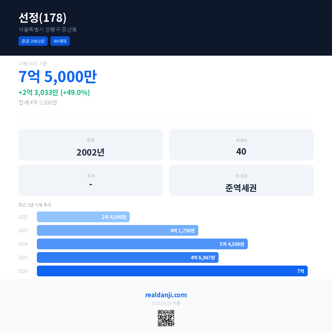 선정(178) 최근 거래가는 7억 5,000만입니다. (2026-02)