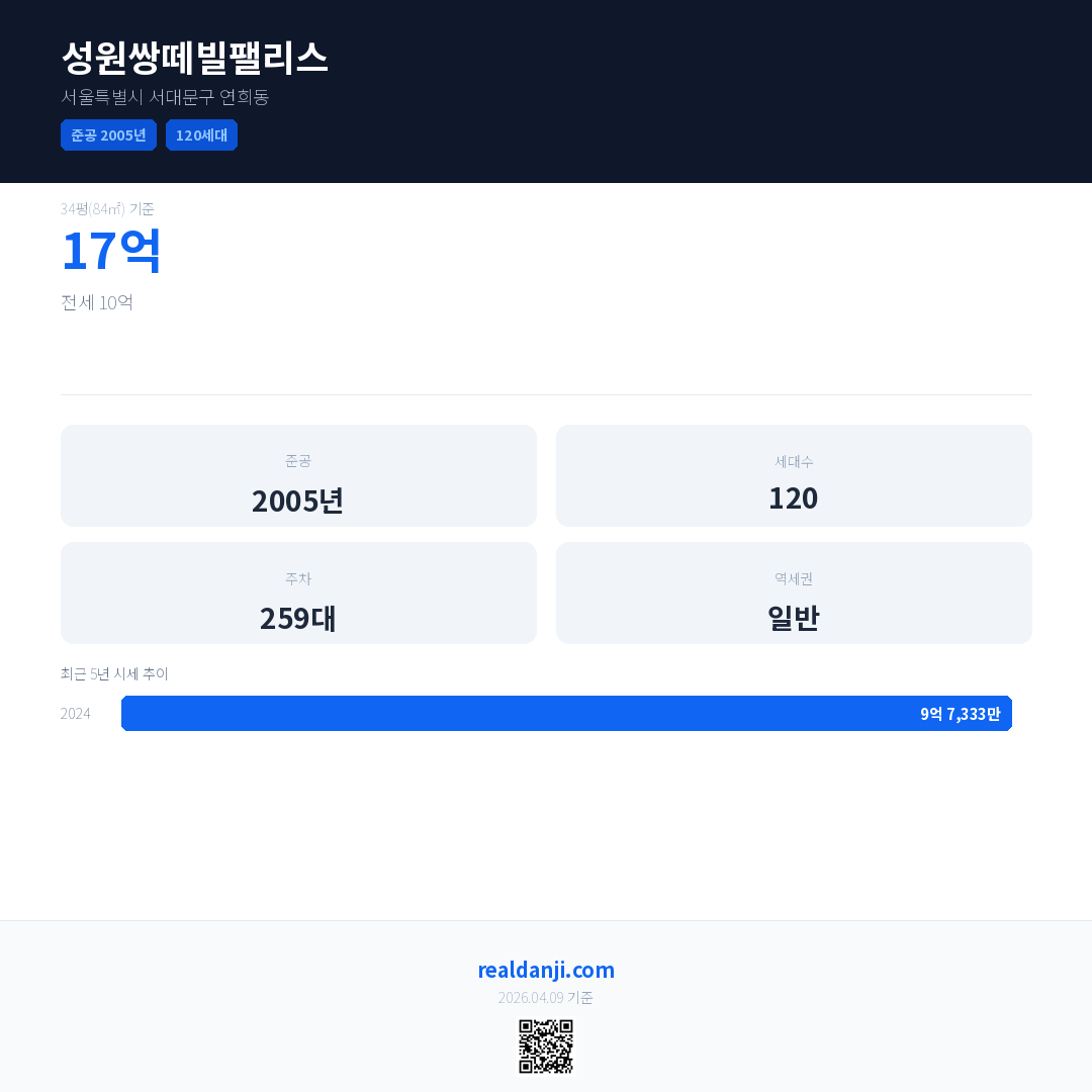 성원쌍떼빌팰리스 최근 거래가는 17억입니다. (2026-02)