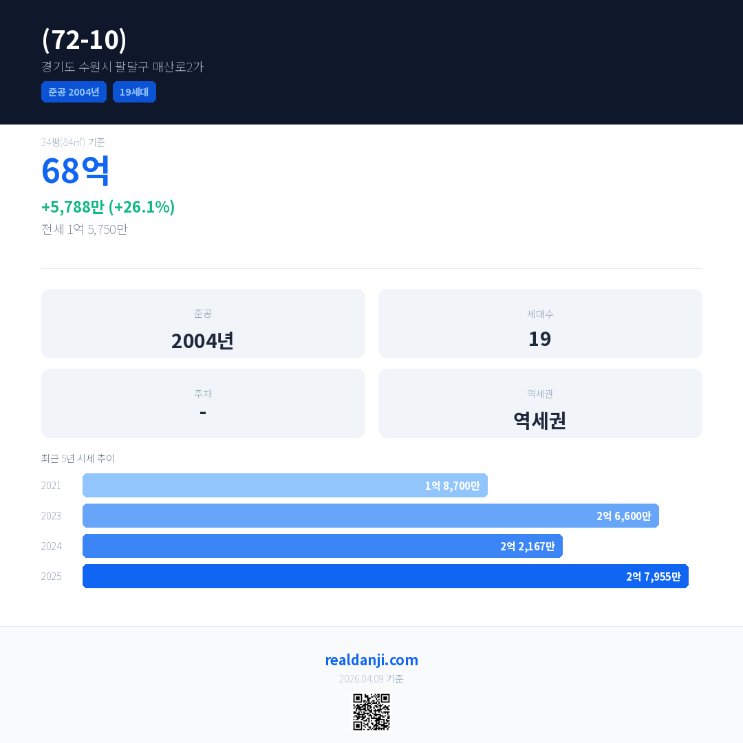(72-10) 최근 거래가는 68억입니다. (2026-03)