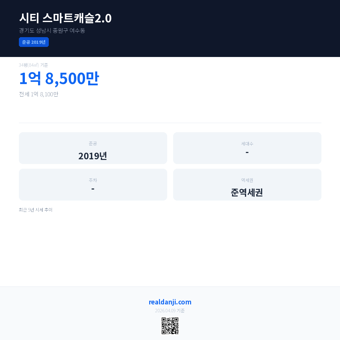 시티 스마트캐슬2.0 최근 거래가는 3억 9,500만입니다. (2025-05)