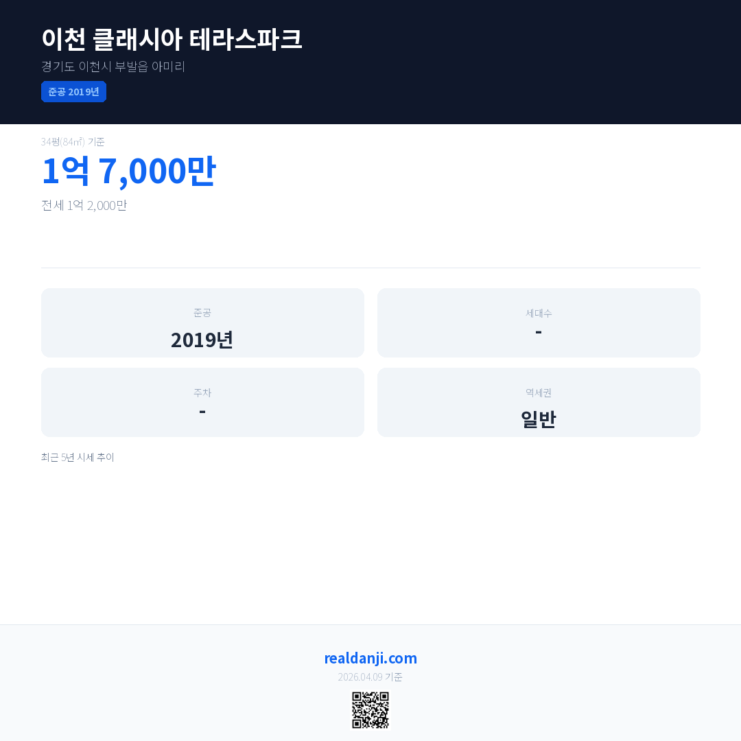 이천 클래시아 테라스파크 최근 거래가는 1억 2,000만입니다. (2026-04)