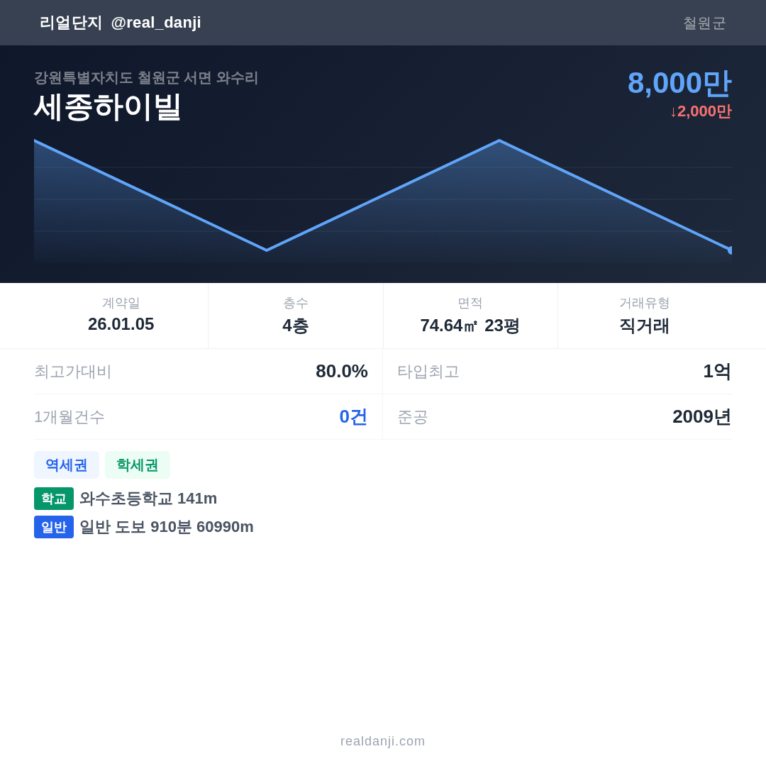 | 2026.01.05 | 75㎡ | 4층 | 8,000만 |