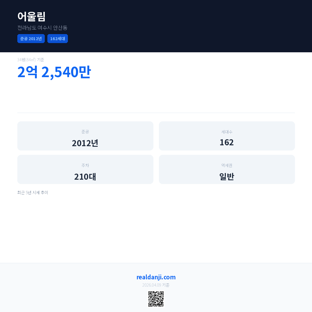 어울림 최근 거래가는 2억 2,540만입니다. (2020-07)