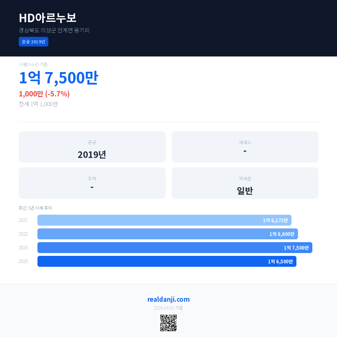 HD아르누보 국민평형 기준 2025년 평균 거래가는 1억 6,500만으로, 전년 대비 5.7% 하락 했습니다.