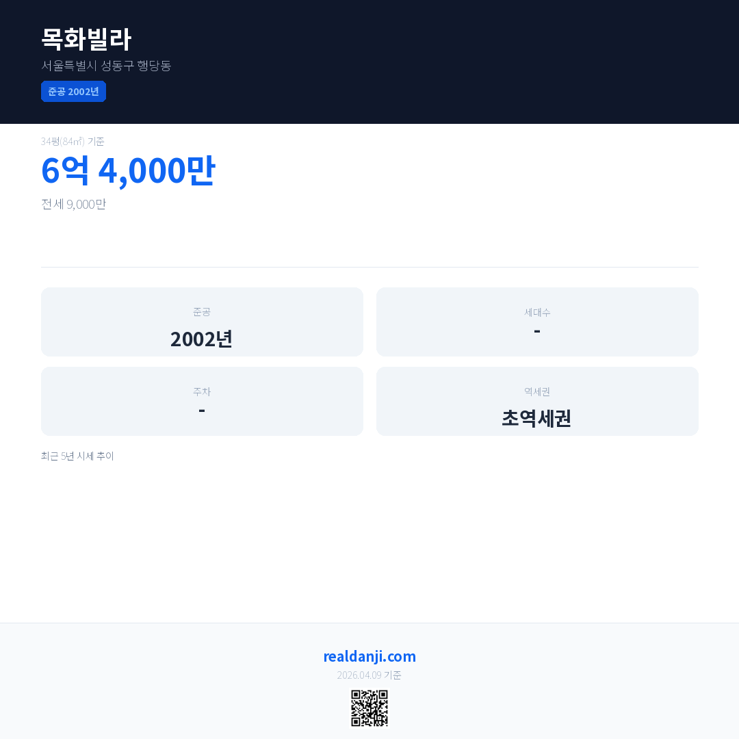 목화빌라 최근 거래가는 6억 4,000만입니다. (2026-03)