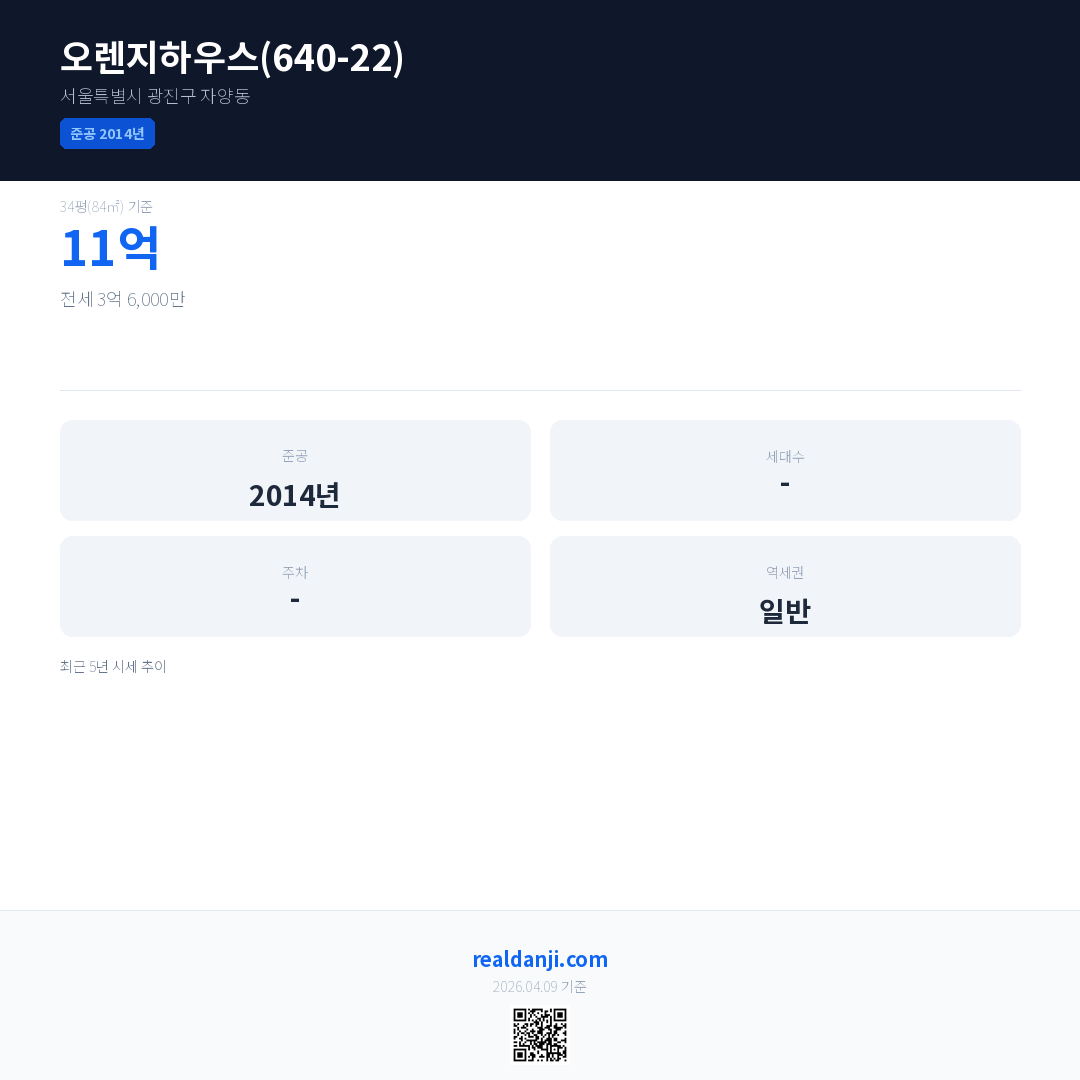 오렌지하우스(640-22) 최근 거래가는 6억 7,700만입니다. (2026-04)