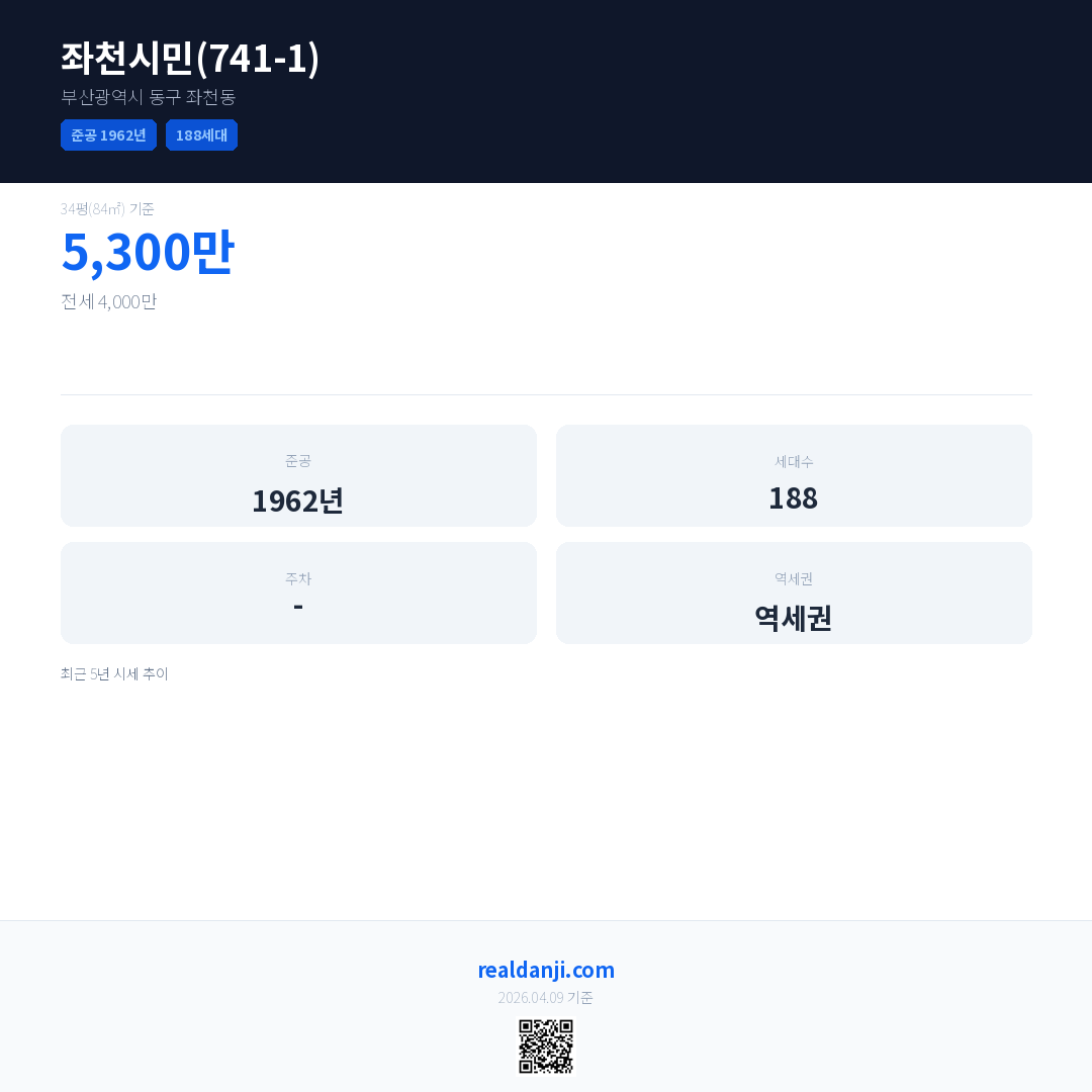 좌천시민(741-1) 최근 거래가는 5,300만입니다. (2026-02)