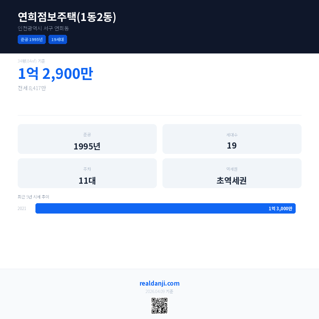 연희점보주택(1동2동) 최근 거래가는 1억 5,000만입니다. (2026-03)