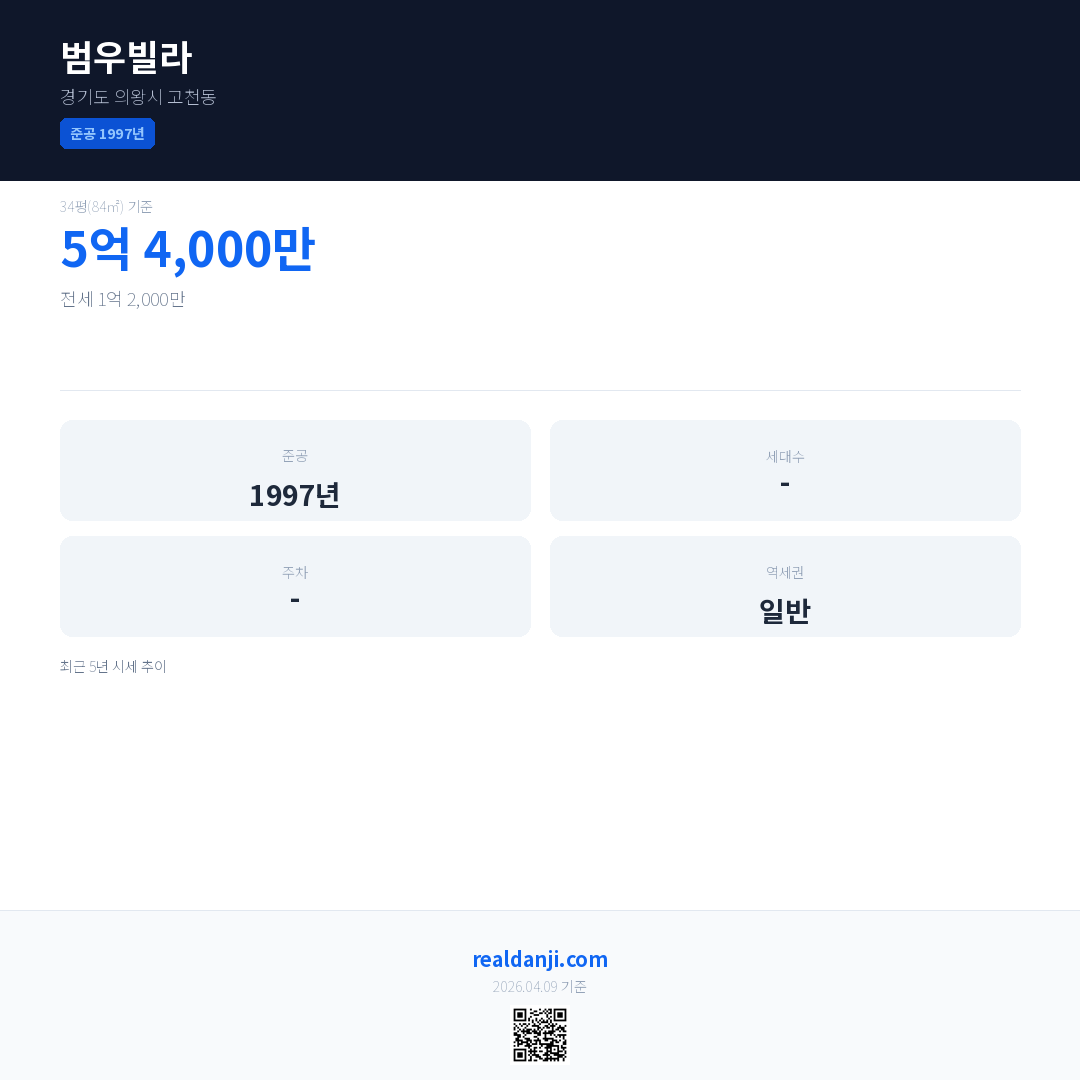 범우빌라 최근 거래가는 5억 4,000만입니다. (2022-11)