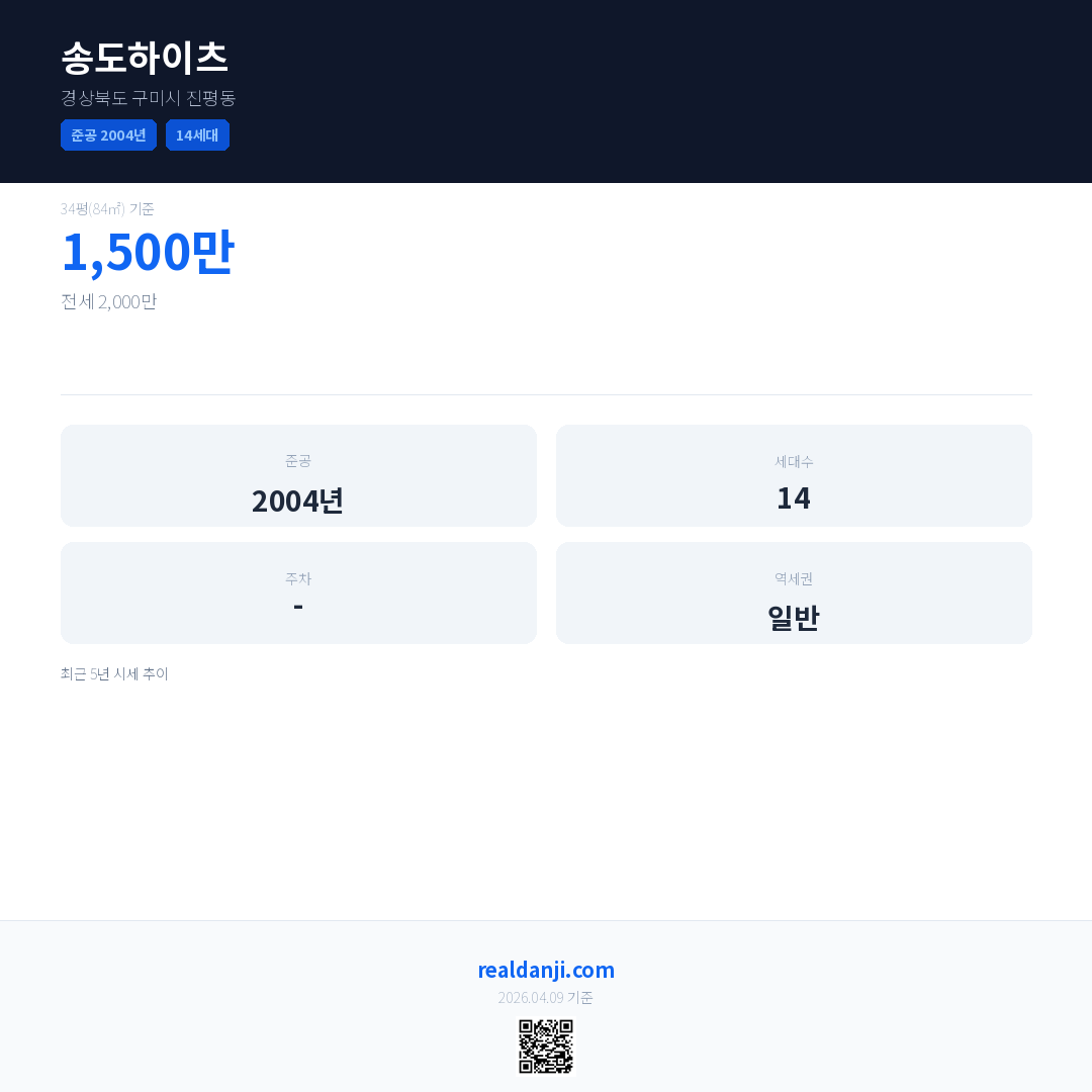 송도하이츠 최근 거래가는 1,500만입니다. (2019-07)
