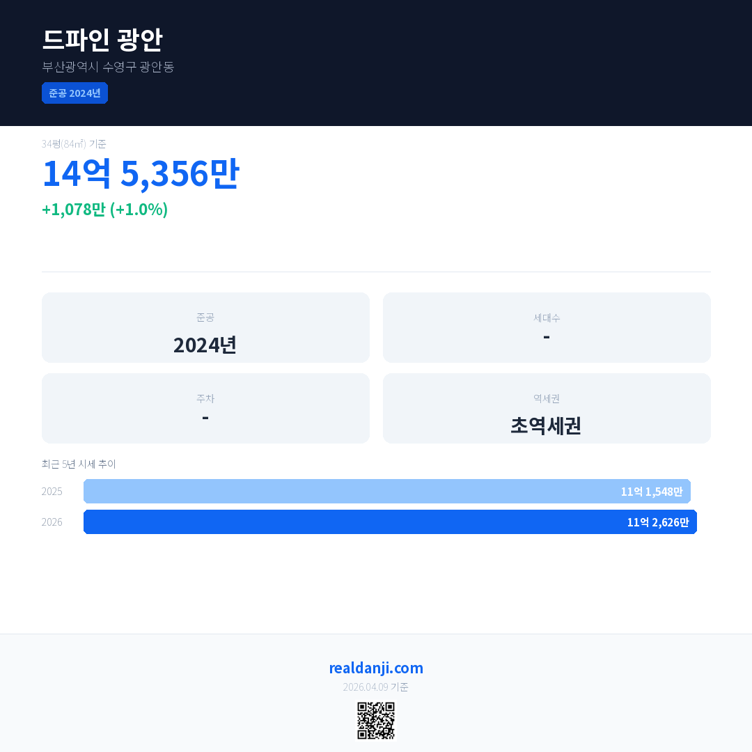 드파인 광안은(는) 2024년에 준공되었으며, 현재 2년차입니다.