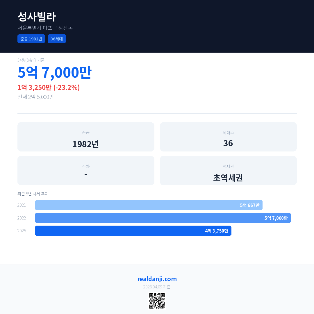 성사빌라 최근 거래가는 5억 7,000만입니다. (2025-02)