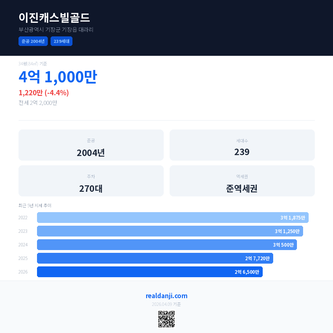 이진캐스빌골드 최근 거래가는 4억 1,000만입니다. (2026-01)