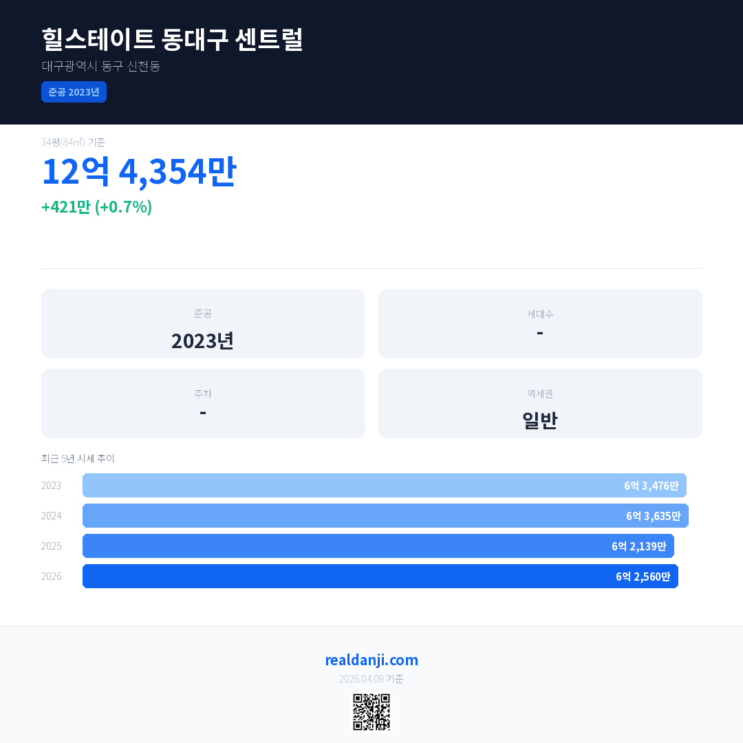 힐스테이트 동대구 센트럴 최근 거래가는 12억 4,354만입니다. (2026-04)