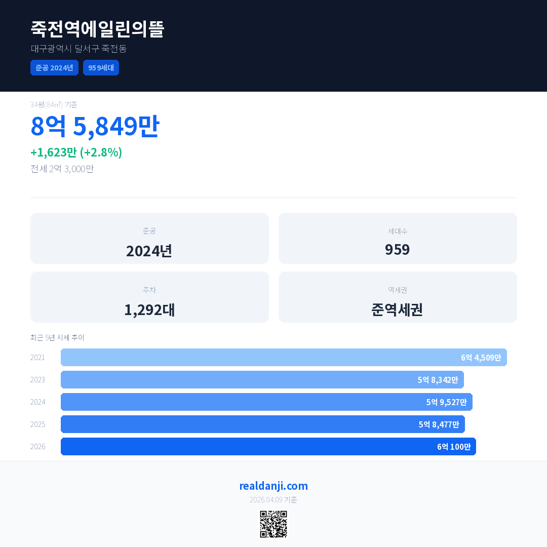 죽전역에일린의뜰 최근 거래가는 8억 5,849만입니다. (2026-03)