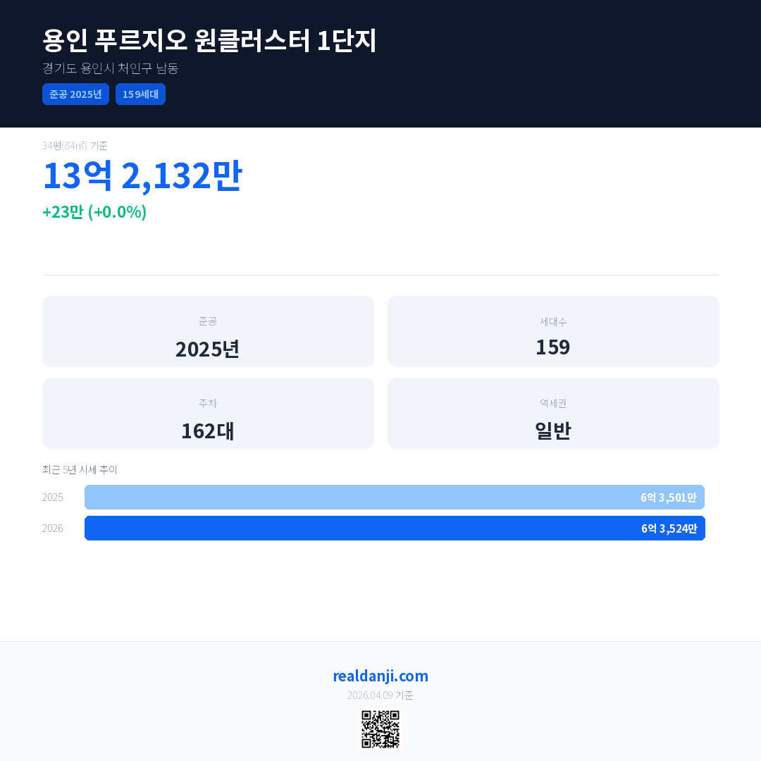 용인 푸르지오 원클러스터 1단지 최근 거래가는 6억 3,347만입니다. (2026-04)