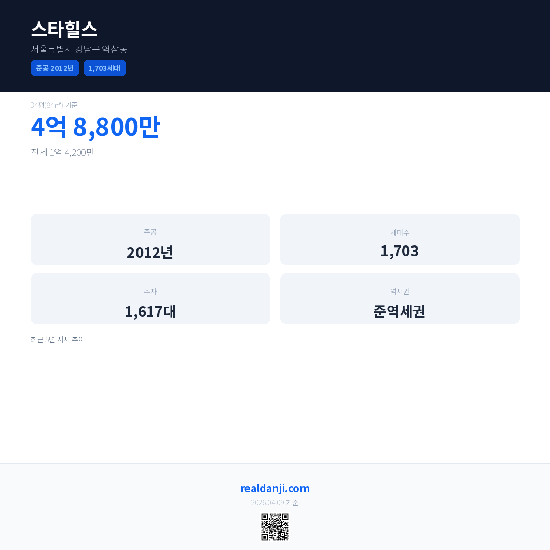 스타힐스 최근 거래가는 4억 8,800만입니다. (2026-01)