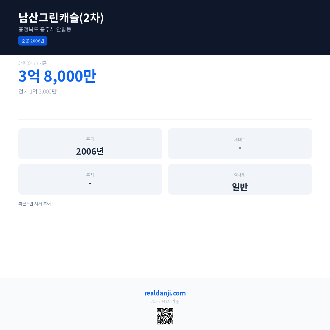 남산그린캐슬(2차) 최근 거래가는 3억 8,000만입니다. (2025-07)