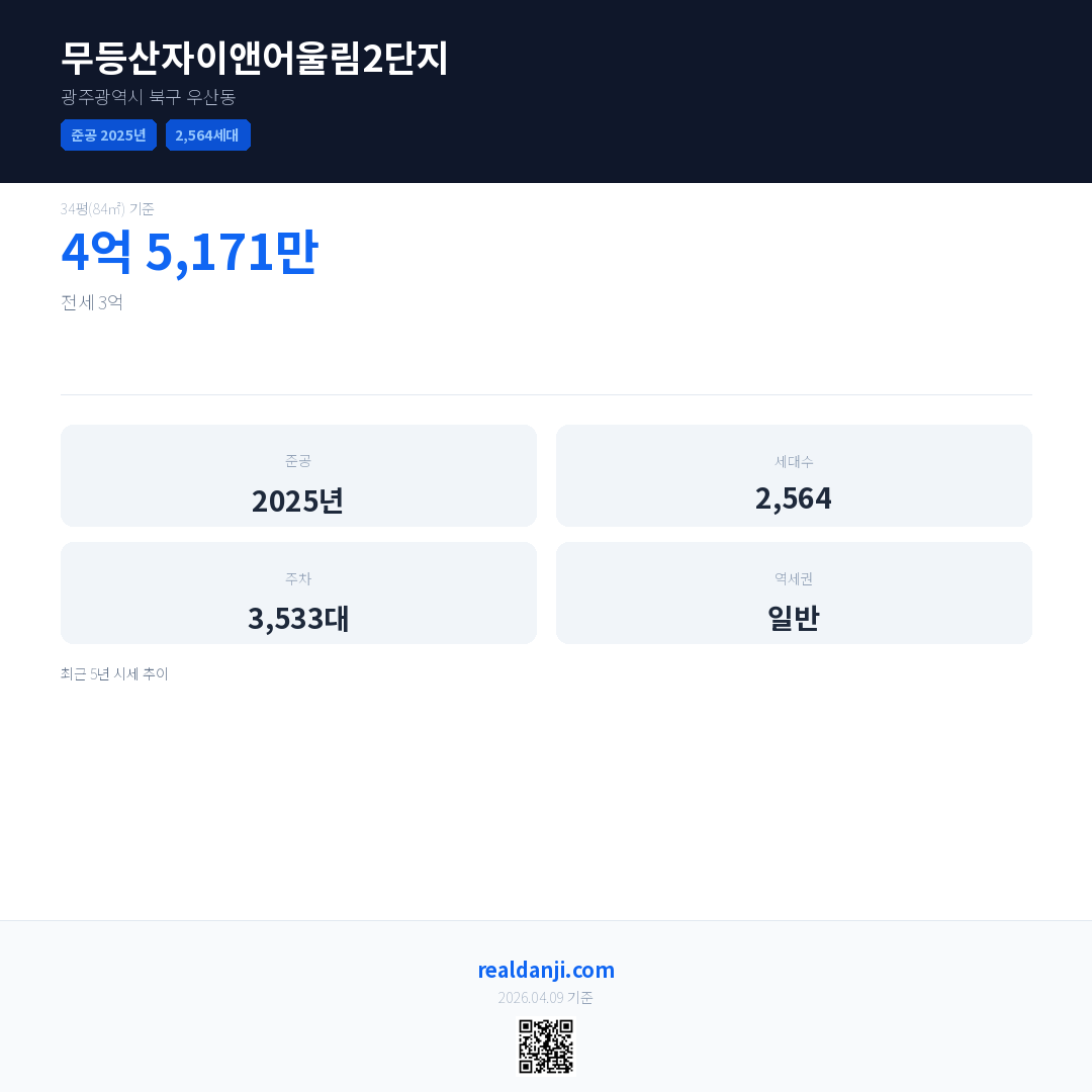 무등산자이앤어울림2단지 최근 거래가는 4억 5,171만입니다. (2026-03)