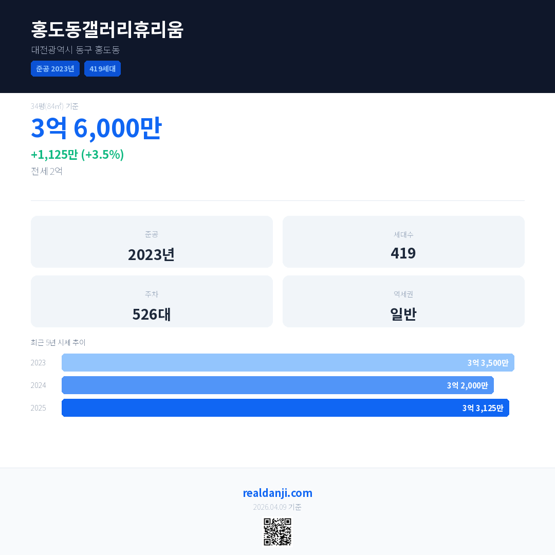 홍도동갤러리휴리움 최근 거래가는 3억 6,000만입니다. (2026-04)