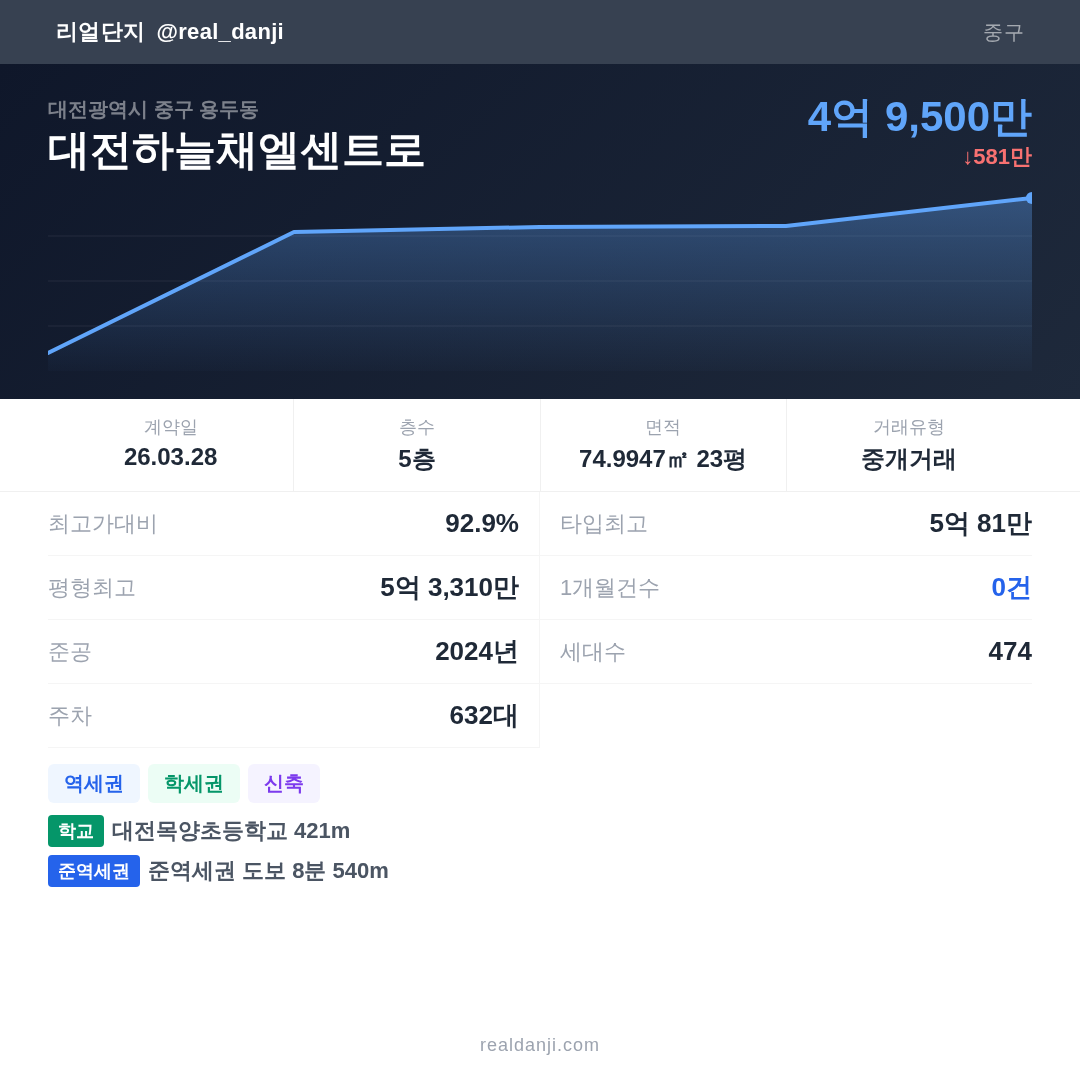 | 2026.03.28 | 75㎡ | 5층 | 4억 9,500만 |