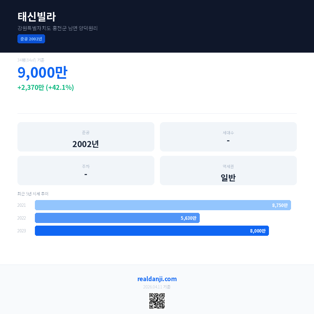 태신빌라 최근 거래가는 9,000만입니다. (2023-11)