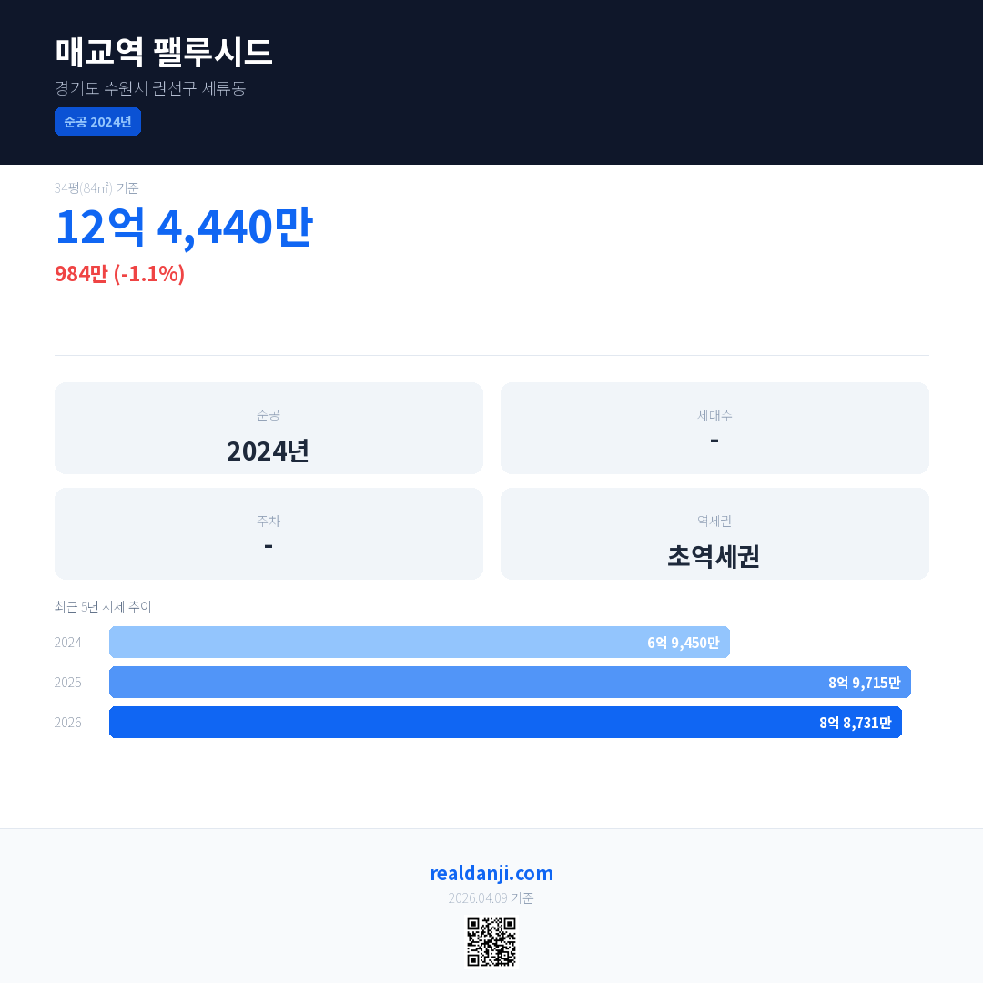 매교역 팰루시드 최근 거래가는 9억 2,230만입니다. (2026-04)