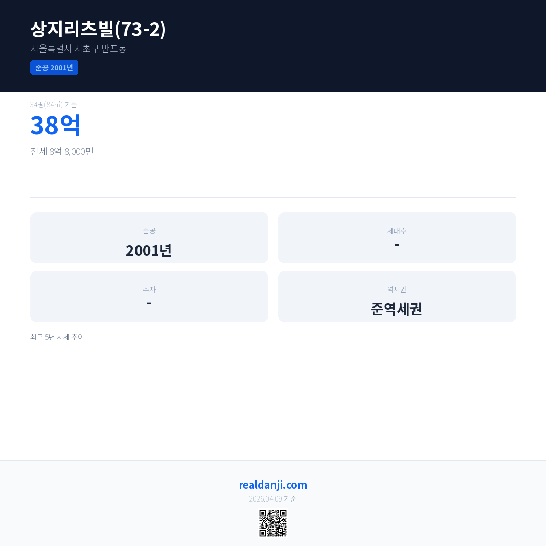 상지리츠빌(73-2)은(는) 2001년에 준공되었으며, 현재 25년차입니다.
