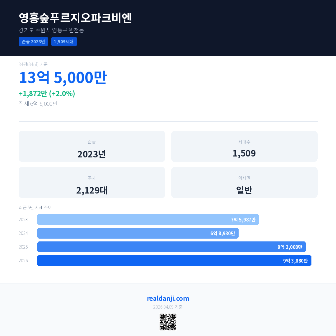 영흥숲푸르지오파크비엔 최근 거래가는 13억 5,000만입니다. (2026-04)