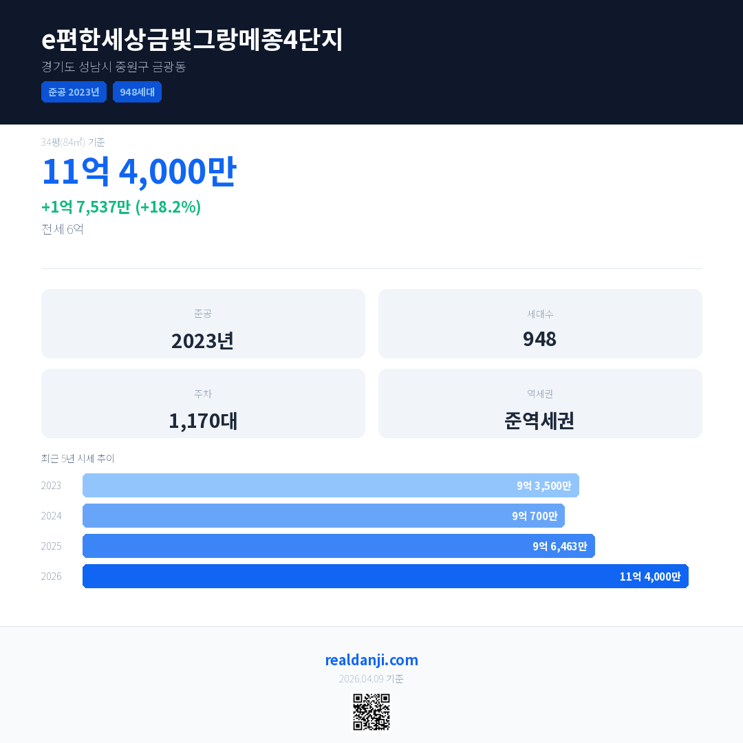 e편한세상금빛그랑메종4단지 최근 거래가는 11억입니다. (2026-03)