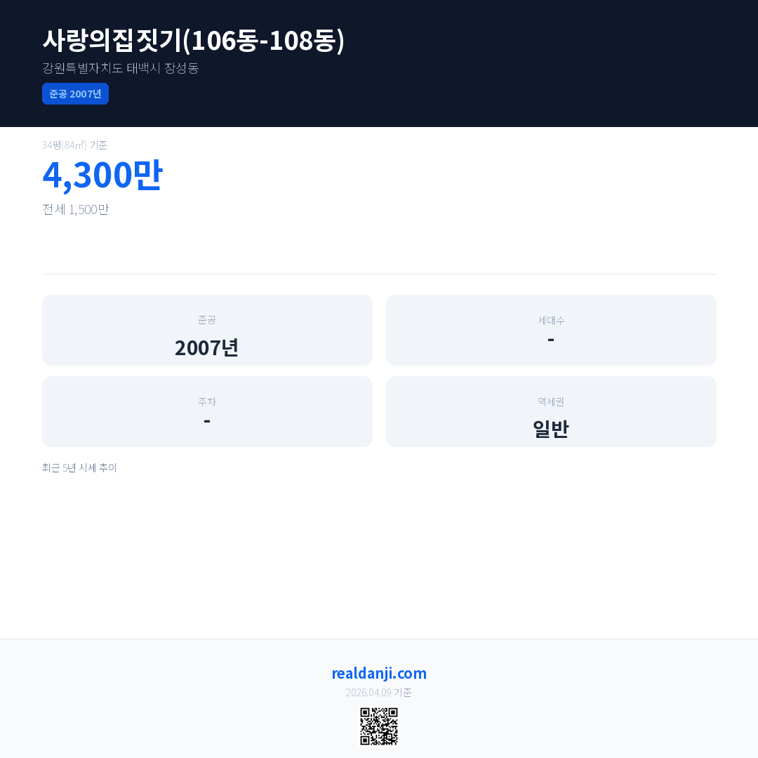 사랑의집짓기(106동-108동)은(는) 2007년에 준공되었으며, 현재 19년차입니다.