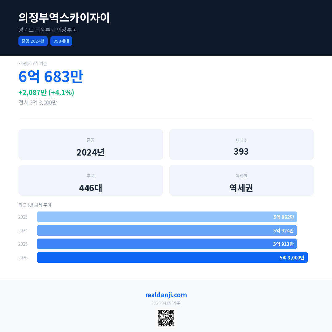 의정부역스카이자이은(는) 2024년에 준공되었으며, 현재 2년차입니다. 총 393세대 규모입니다.