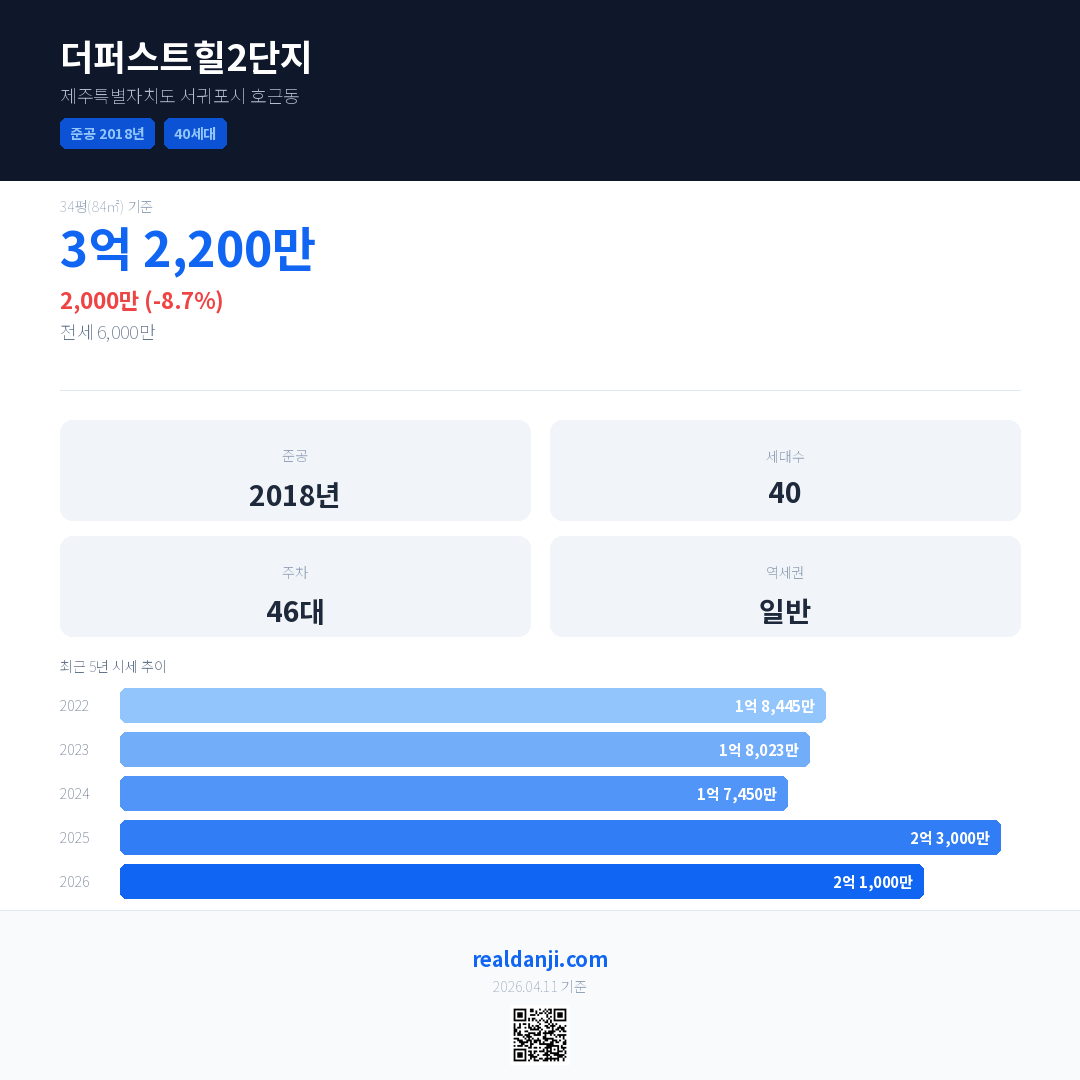 더퍼스트힐2단지 최근 거래가는 3억 2,200만입니다. (2026-02)