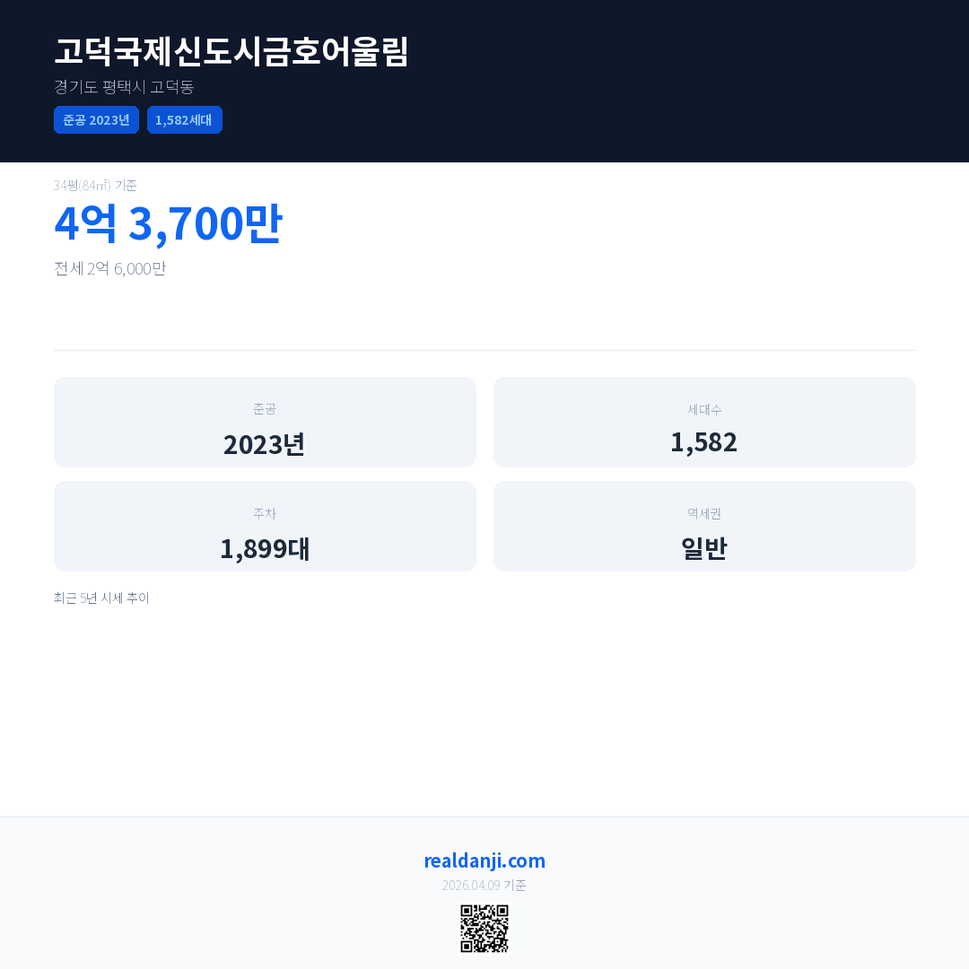 고덕국제신도시금호어울림 최근 거래가는 4억 3,700만입니다. (2026-04)