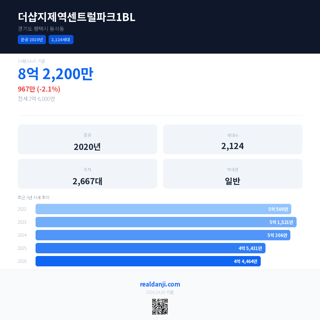 더샵지제역센트럴파크1BL 최근 거래가는 8억 2,200만입니다. (2026-04)