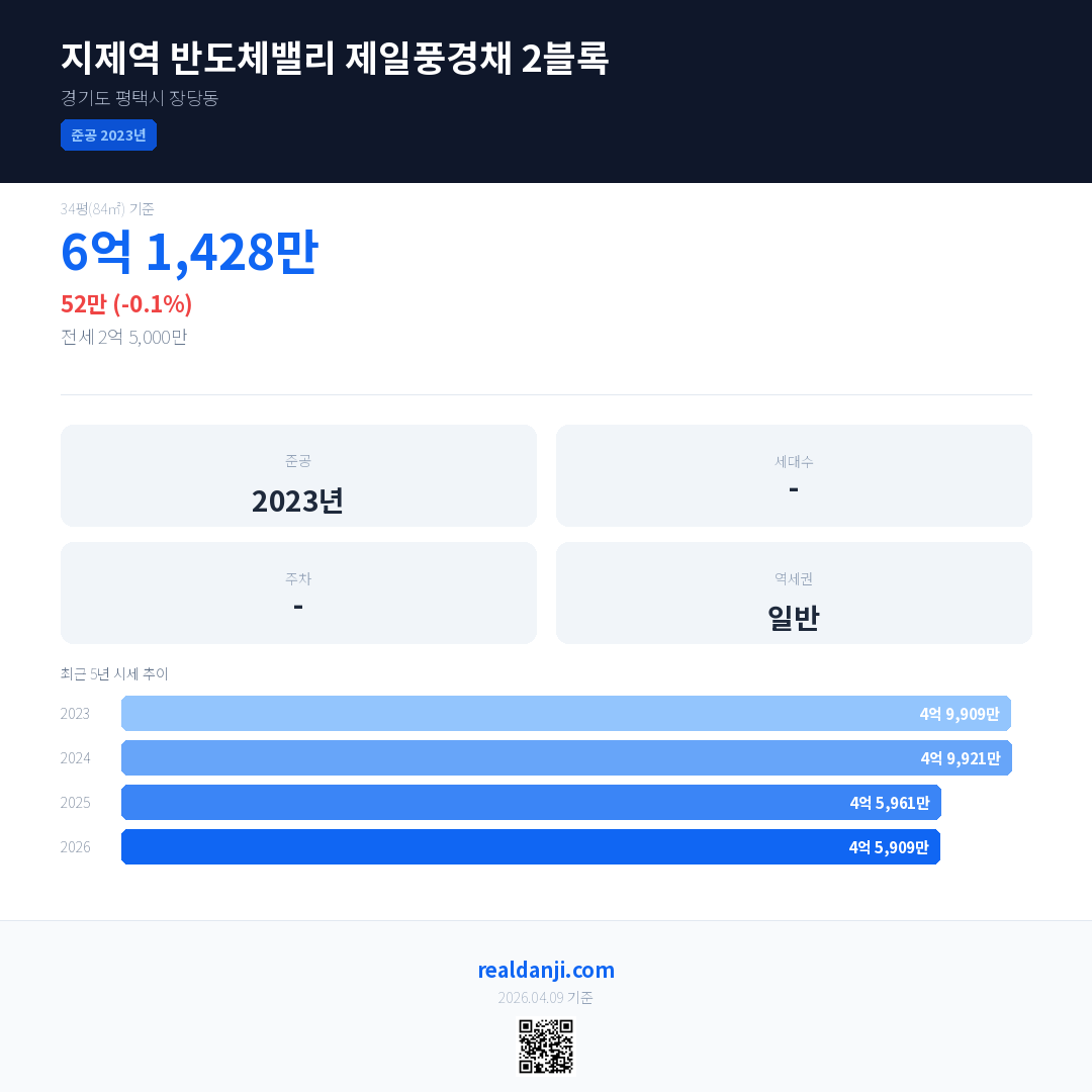 지제역 반도체밸리 제일풍경채 2블록은(는) 2023년에 준공되었으며, 현재 3년차입니다.