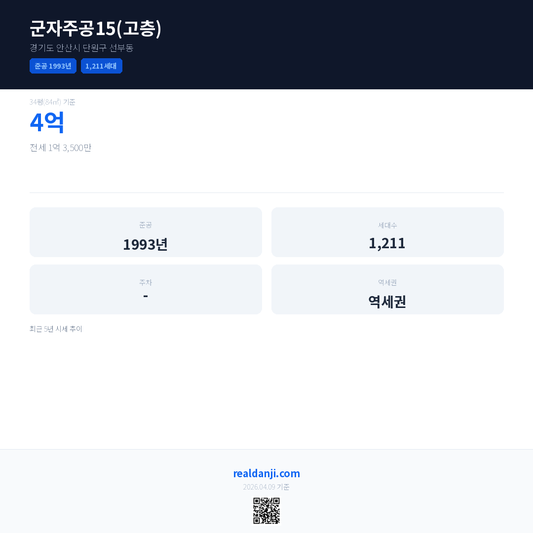 군자주공15(고층) 최근 거래가는 4억입니다. (2026-03)