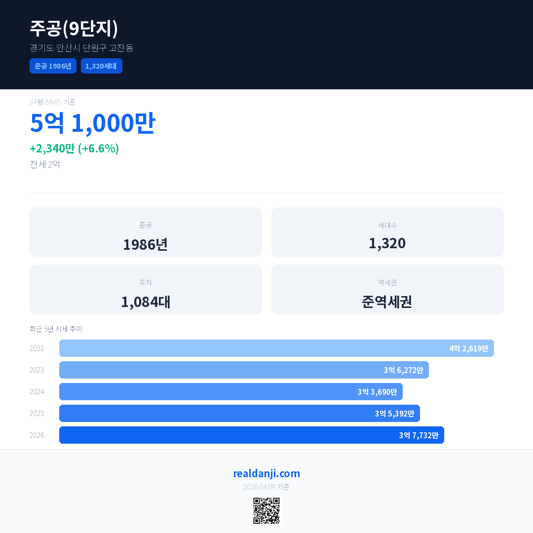 주공(9단지) 최근 거래가는 5억 1,000만입니다. (2026-04)