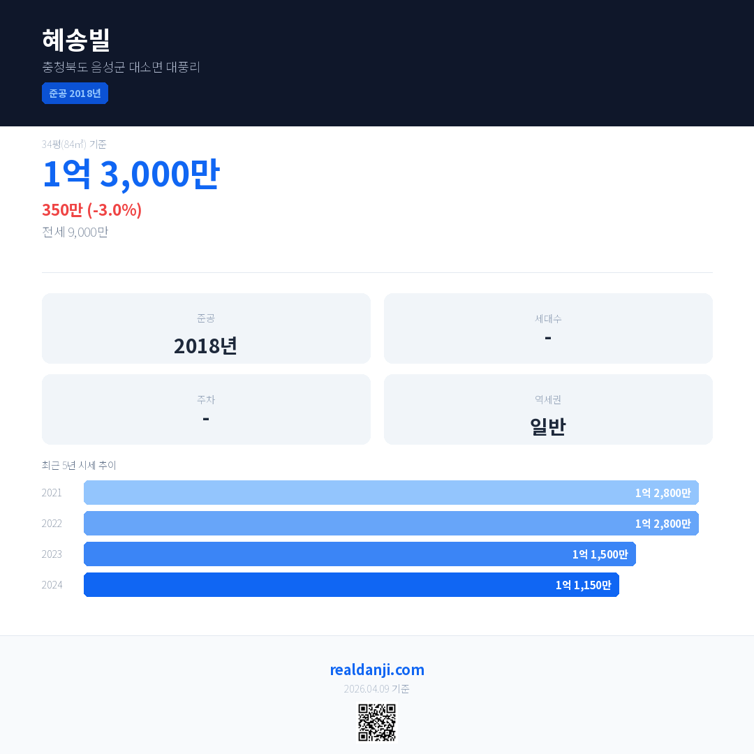 혜송빌 최근 거래가는 1억 3,000만입니다. (2024-11)