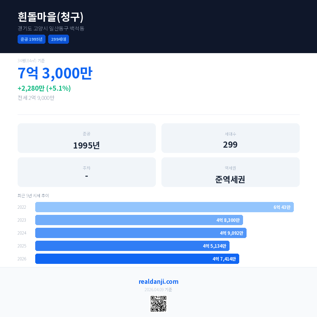 흰돌마을(청구) 최근 거래가는 4억 3,000만입니다. (2026-04)