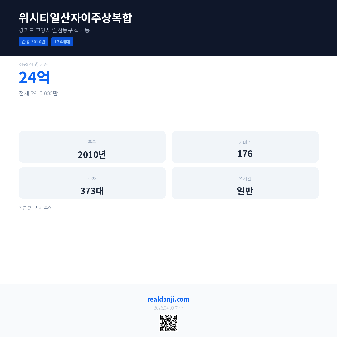 위시티일산자이주상복합 최근 거래가는 24억입니다. (2026-03)