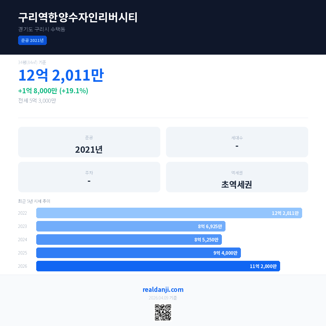 구리역한양수자인리버시티 최근 거래가는 12억 2,011만입니다. (2026-03)